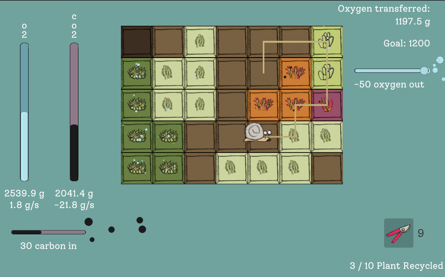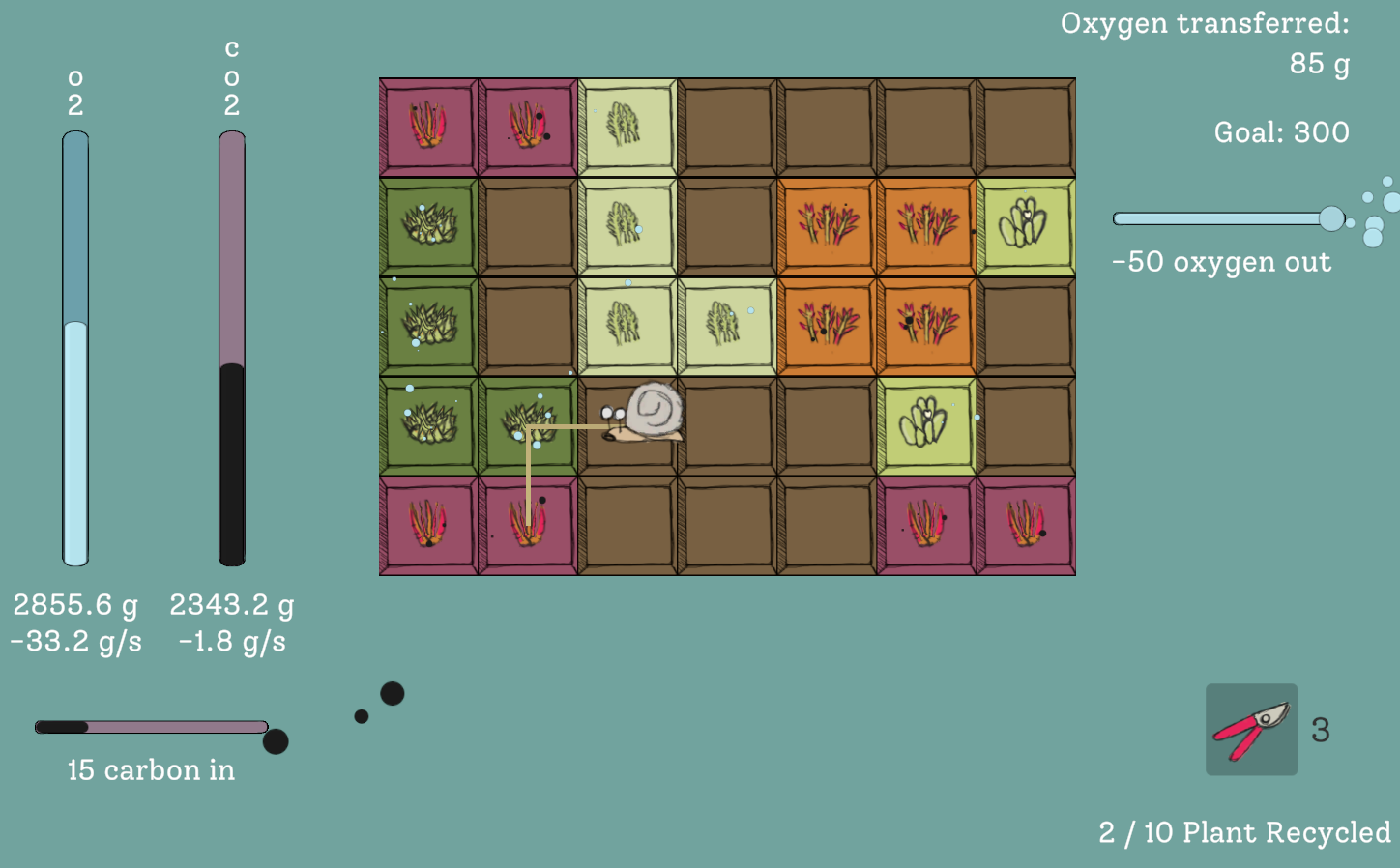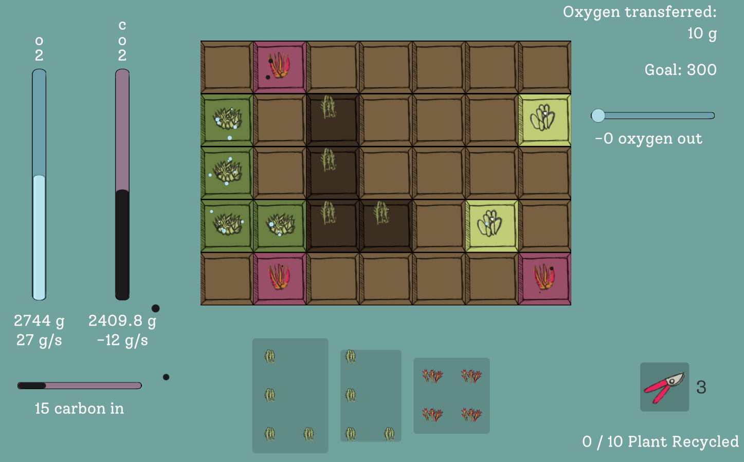 control the oxygen-valve! plant plants! watch out for the weeds.